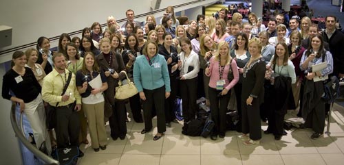AFA Chair Deborah Price, Au.D. (front row, third from right), and AFA Executive Director Susan Paarlberg (front row, in blue) presented otoscopes to 72 third-year Au.D. students at this year's annual NAFDA luncheon in Denver, CO.