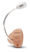 According to Cariola, Beltone Touch is the first hearing instrument style where the microphone is in the recessed back end of the concha, hidden under the helix. By placing the microphone in the concha - rather than behind the ear - the Beltone Touch makes use of the ear's own sound-collecting and attenuating traits. This provides benefits like more gain and reduced wind noise. Separating the microphone from receiver also helps reduce acoustic feedback (whistling). In addition, the transparent tube connecting shell and microphone acts as a lock, holding Beltone Touch securely in place.