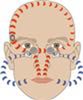 The red marking shows bone conduction from one's own voice and from an implanted vibrator. The blue marking shows air conduction from one's own voice.