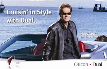 Somerset, NJ January 28 - This month, Oticon, Inc. will release a variety of new marketing tools promoting Oticon Dual. The newest addition to the Oticon family will be showcased on the ears of a more familiar "addition" to the Oticon family, rock legend Huey Lewis, founder and lead vocalist of Huey Lewis and the News. Lewis, an early adaptor and enthusiast for Oticon Delta, helped Oticon bring to life Delta's message of style and performance and this month, will share his real life experience "trading up" to Oticon's newest innovation.