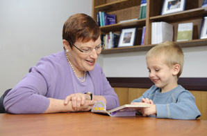 Dr. Mabel Rice reading with a young friend.