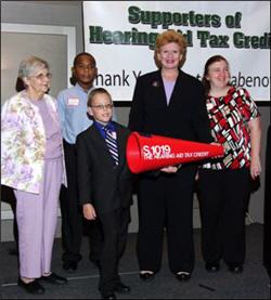 Sen. Stabenow urged the audience to continue efforts in support of S.1019, especially to help families with children who have hearing loss and for adults with hearing loss who face an already-difficult job market. She noted that she is working within the Senate Finance Committee, of which she is a member, to promote passage of the bill. She added that the bill was ultimately about "whether we as a country can fully benefit from the skills, knowledge and talent of people with hearing loss."