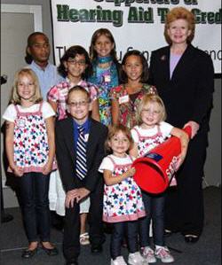 Speaking during the event, Conor Waterman, age 9, described how his hearing aids have enabled him to be fully mainstreamed in the third grade, and how he "has a fantastic life." He also thanked Senator Stabenow for "helping kids get hearing aids." Jordan Crawford, age 11, described how his parents learned of his hearing loss at age 3, and how hearing aids have enabled him to excel in school and as a musician playing both the piano and the trumpet.
