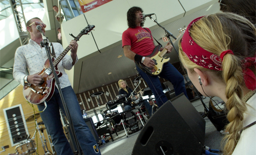 An audience of 200 students from Cleveland State University rocked out to the "World's Quietest Concert" as part of Energizer's "It's Hip to Hear" program, a national hearing health campaign that educates people about rocking responsibly. Up-and-coming rockers Eagles of Death Metal performed as the audience listened to a simulcast performance broadcast through portable FM music players instead of speakers.