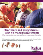 Micro-Tech has developed a set of promotional and patient usage materials to support Radius hearing instruments before and during an office visit."HEAR, There and Everywhere" materials promotes the benefits of amplification and describes the adaptive nature of Radius instruments. Display advertisements and direct mailers are available for promotion, while brochures, sales tools and a poster provide support in the practice.