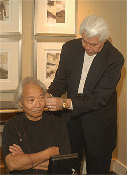 Noted Chinese dissident poet can hear again after visit from 'The Santa Claus of Hearing,' William Austin(August 25, 2004) Despite being told by medical experts that he would never fully regain his hearing, acclaimed poet Er Tai Gao can now hear again due to the amazing work of William Austin. Saturday at the Mandalay Bay Hotel, Austin, head of the Starkey Hearing Foundation and President of Starkey Laboratories, fitted Er Tai Gao with special devices which have restored his auditory senses.