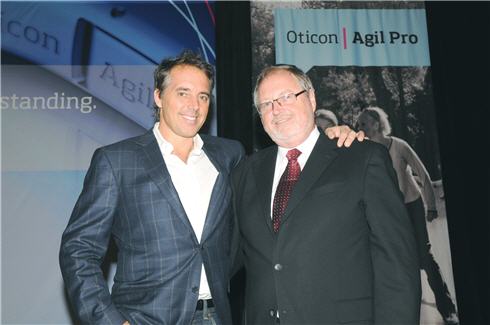 Dan Buettner, author of The Blue Zones: Lessons for Living Longer from the People Who've Lived the Longest, delivered the keynote address at recent Oticon conferences exploring the impact of hearing loss on cognitive function and the ability to stay fully engaged in everyday activities. (l-r) Dan Buettner and Oticon President Peer Lauritsen.