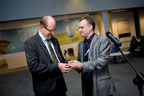 World-class Danish engineering, design and craftsmanship - Jes Olsen, Director of Development for Oticon A/S, accepts the prestigious Danish Product Award 2007 from Rolf Ask Clausen, editor-in-chief of Ingeniørens, the Danish news magazine that sponsors the annual award honoring outstanding product development and innovation by Danish companies. Epoq was selected over entries from 36 leading Danish companies for its breakthrough wireless technology that enables people with hearing loss, for the first time, to better localize sound.