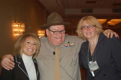 Oticon Marketing Team members, Senior Marketing Manager Nancy Palmere (left) and Marianne Cadieu (right), conference and events manager, joined with Drill Sergeant Klor to put Oticon Marketing Boot Camp through drills and exercises during the two-day gathering.