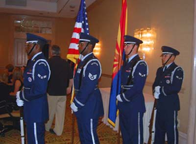 Senior Airmen from Luke Air Force Base conducted an official Honor Guard to welcome 165 hearing care professionals to the Oticon Marketing Boot Camp.