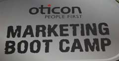Oticon's marketing team chose a 'boot camp' theme to reflect the intensity of the two-day training session and the transformation they aimed to achieve in practitioners' confidence and readiness to put their new skills into action. "We wanted to provide a well-rounded view of how marketing touches all aspects of a hearing care practices," stated Gordon Wilson, Vice President of Marketing for Oticon, Inc. "Our program addressed not only the key skills needed to prepare ads, brochures and other merchandizing materials but also explored how to insure that the way their practice is perceived by their clients - the 'outside perception' s an accurate reflection of the 'inside reality' of their services, staff, product offerings and patient care."