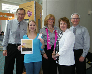 (L-R) Henning Falster;Jamie Shumacker (with paper);Mariann Cadieu;Kathleen Delvin Culver, American Academy of Audiology Foundation Director of Development;and Jim Kothe, VP of Sales Oticon, Inc.