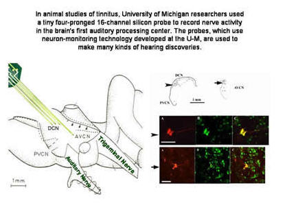 Shore's research team knew from earlier research that some neurons in the cochlear nucleus become hyperactive after hearing damage, and this hyperactivity has been linked to tinnitus in animals.