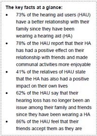 Another finding that has emerged from the study is that 62 percent of the hearing aid users surveyed report that since they started wearing a hearing aid their hearing loss is no longer an issue among their family and friends. 86 percent feel that their friends accept them just as they are.