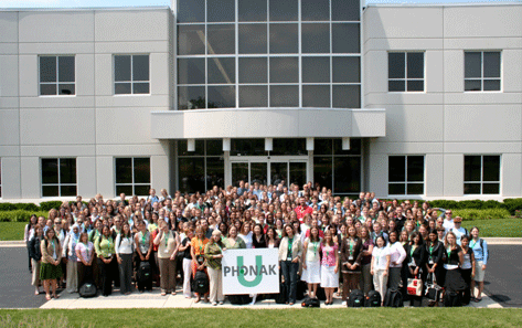 Phonak Hearing Systems in Warrenville, Illinois, was host to the third annual "Phonak U" meeting, an educational conference held exclusively for students in residential AuD programs. This year, over 300 AuD and PhD students, representing 54 graduate programs from across the US, were welcomed to the event by Phonak US President Cathy Jones. The program was designed to augment the experience gained in their educational programs and clinical rotations through a series of lectures, workshops, and "hands-on" experience with hearing aids, FM systems, cerumen management and real-ear measurement equipment.