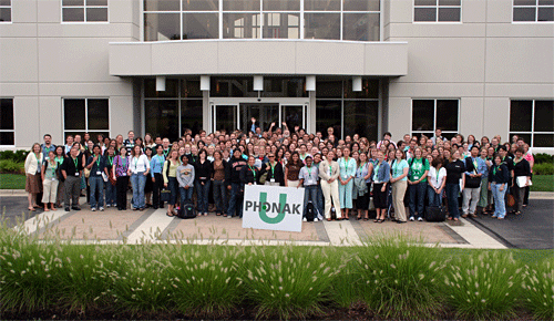The second annual meeting of "Phonak U", an educational conference held exclusively for students in residential AuD programs, was held at Phonak's US Headquarters in Warrenville, Illinois. This year, 275 AuD and PhD students, representing 51 graduate programs from across the US, were welcomed to the event by Phonak US President Cathy Jones.