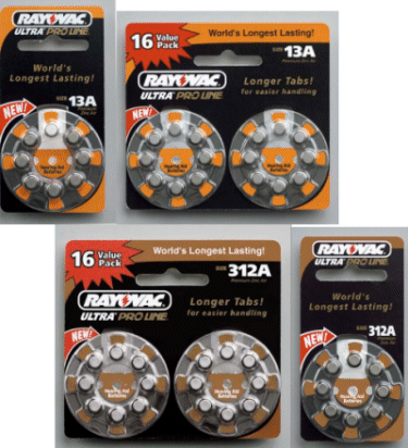 Rayovac Ultra ProLine premium zinc air batteries are available in sizes: 13, 312, 10, 675 and 5.