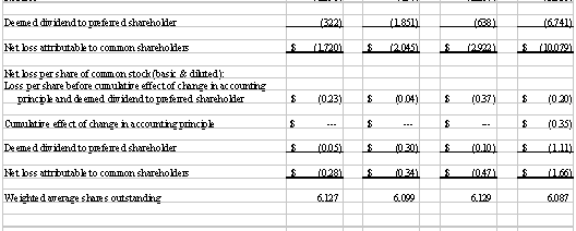 For the six months ended January 31, 2002, revenues increased 5.3% to $25.1 million from $23.9 million for the six months ended January 31, 2001. The Company reported a net loss attributable to common shareholders of $2.9 million, or $0.47 per fully diluted outstanding share, for the six months ended January 31, 2002, versus a net loss attributable to common shareholders of $10.1 million, or $1.66 per fully diluted outstanding share, for the first half of fiscal 2001.