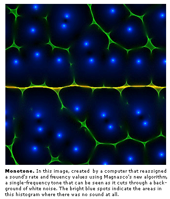 In a recent issue of the Proceedings of the National Academy of Sciences, Marcelo Magnasco, professor and head of the Mathematical Physics Laboratory at Rockefeller University, has published a paper that may prove to be a sound-analysis breakthrough, featuring a mathematical method or "algorithm" that's far more nuanced at transforming sound into a visual representation than current methods. "This outperforms everything in the market as a general method of sound analysis," Magnasco says. In fact, he notes, it may be the same type of method the brain actually uses.