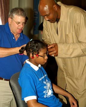 NBA Legend, Karl Malone assists local audiologist in fitting a grateful recipient