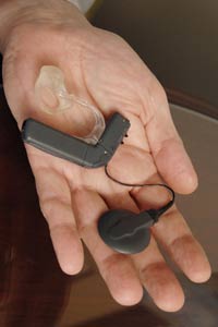 Dr. Peter Roland, chairman of otolaryngology-head and neck surgery, is leading the local clinical trial of a new hybrid hearing aid/cochlear implant device designed for patients who can benefit from both.