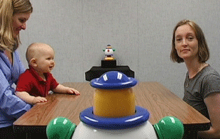 "The sounds they are making are very simple, but some children are looking and making these sounds spontaneously," said Brooks. "They are creating a social interaction or a link. There seems to be something special about the vocalization when they are looking at the toy. They are using social information to pick out what we are focusing on. They can't vocalize words, but they are carefully watching where we are looking. We think they are using social information and getting a boost in figuring out the social and language world together."